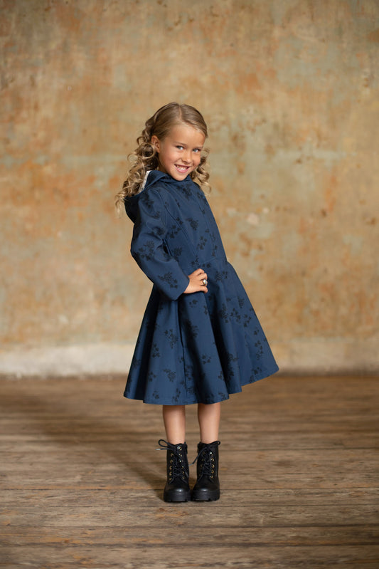 Dark Blue Coat with Floral Print for Girls | Blue Frost