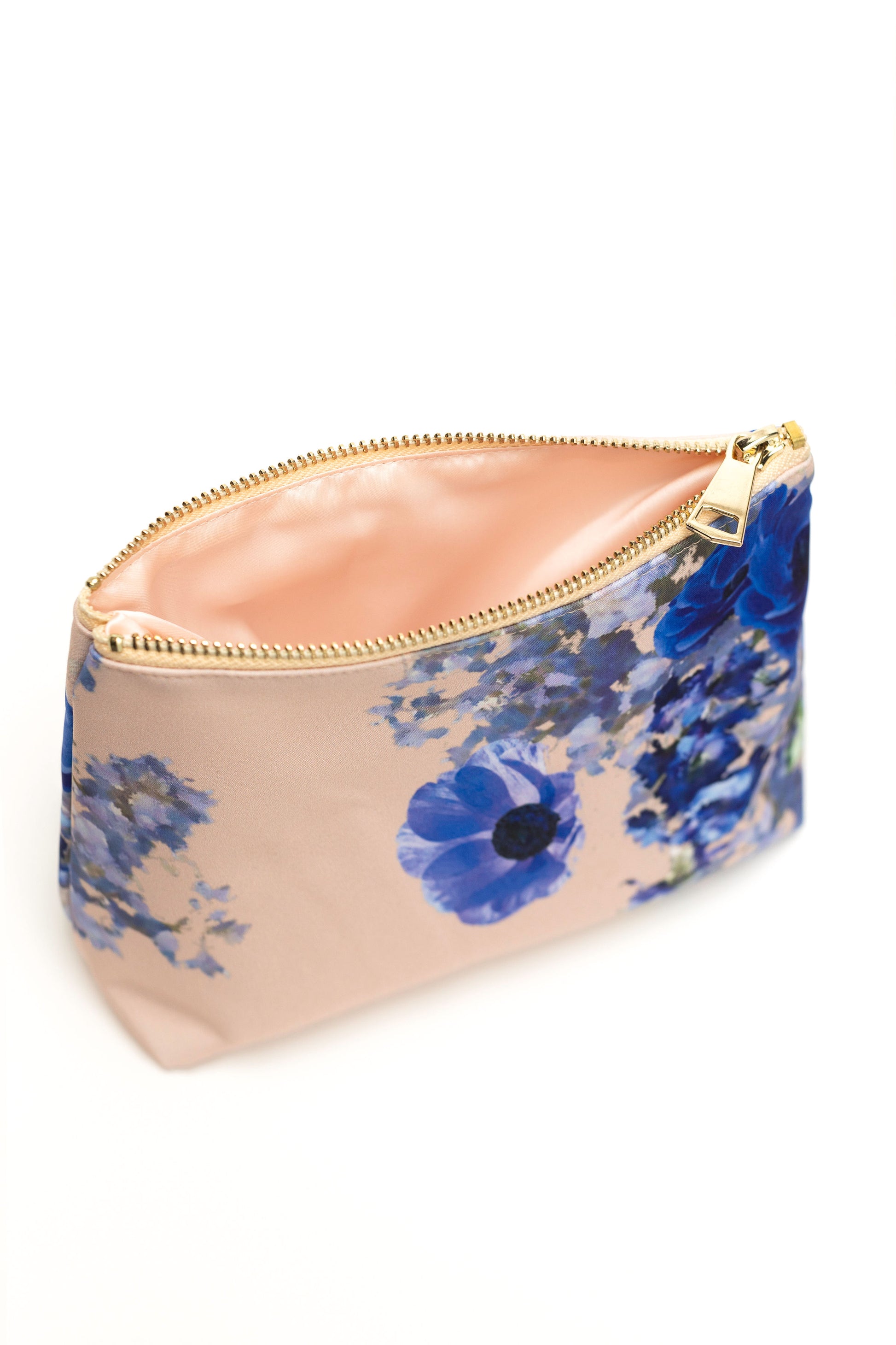The bag's beige and blue color combination captures the essence of a meadow and summer days, making it the perfect companion for moments of self-care and rejuvenation. Whether you're carrying your favorite lipsticks, blushes, or brushes, the 'Cornflower Blue' makeup bag ensures that your cherished cosmetics remain safe and secure.