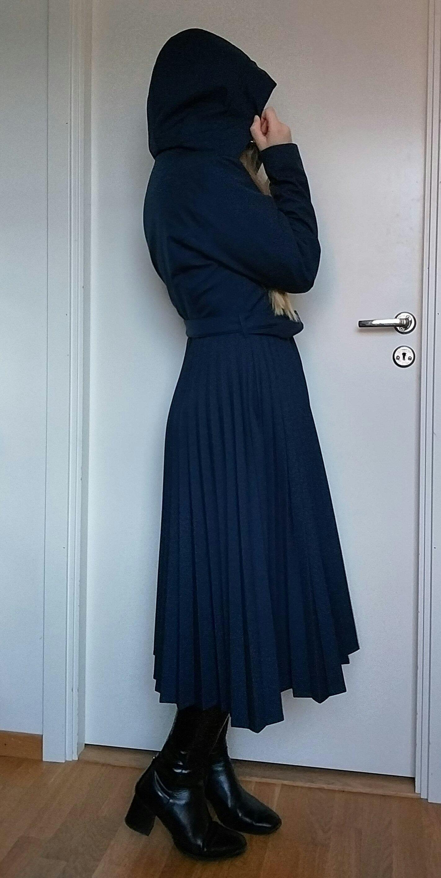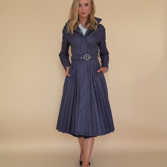 Some coats keep you warm. Others leave an impression. 'Blue Serenade' coat does both. In a deep blue, this water-resistant coat brings a sense of calm confidence wherever you go. The fully pleated skirt moves with you, adding elegance to every step - like walking to the rhythm of your own serenade. A belted waist gently highlights your shape, offering a silhouette that’s both classic and empowering. The removable hood lets you adjust to the weather with ease. Embrace every season with a coat as graceful and strong as you are.