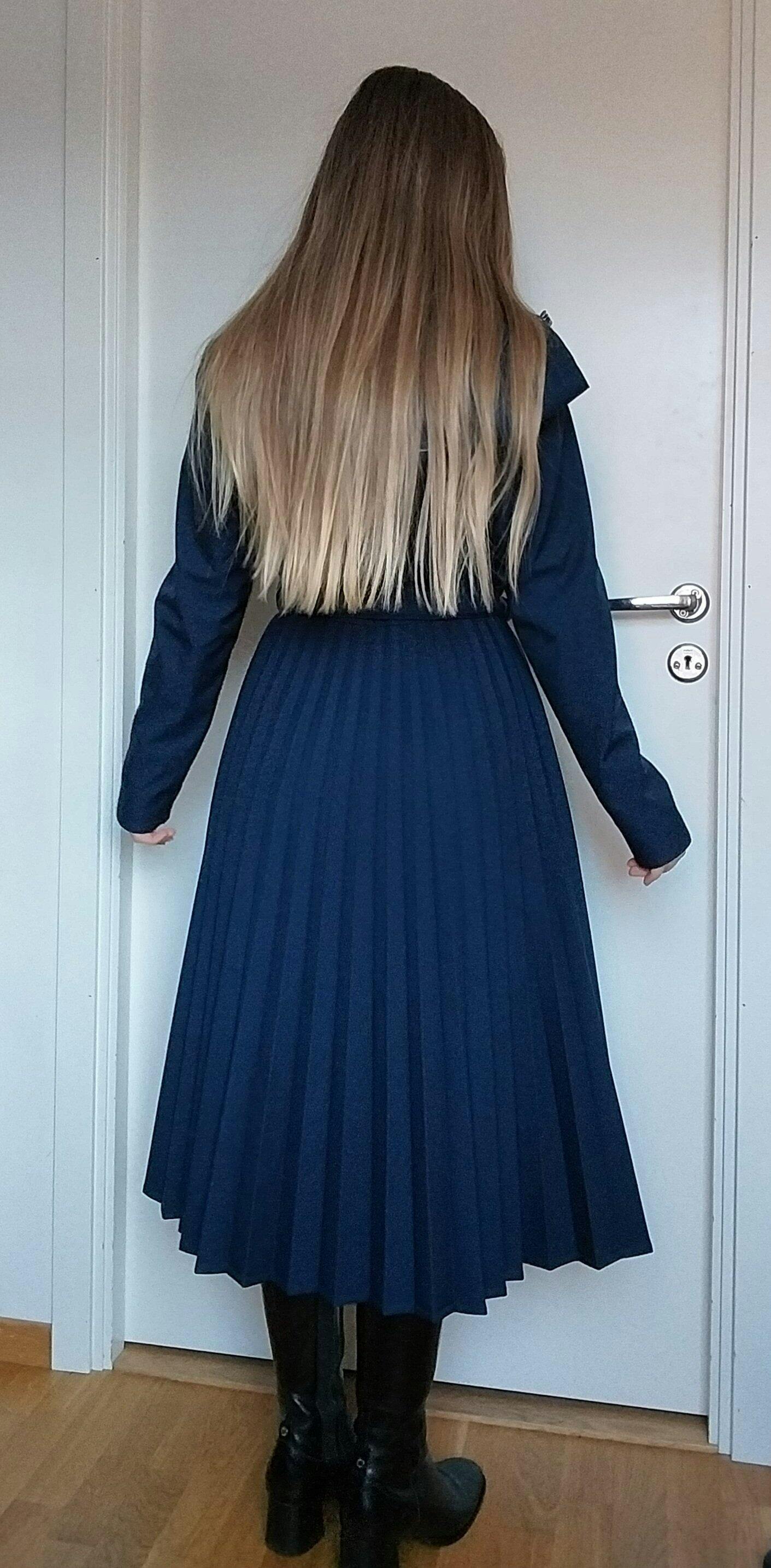 The quality is really good. The blue colour is not as dark as I thought, it’s better in live. The size S is good for me, although I often buy coats in XS. The sizing is quite narrow. Love the coat!