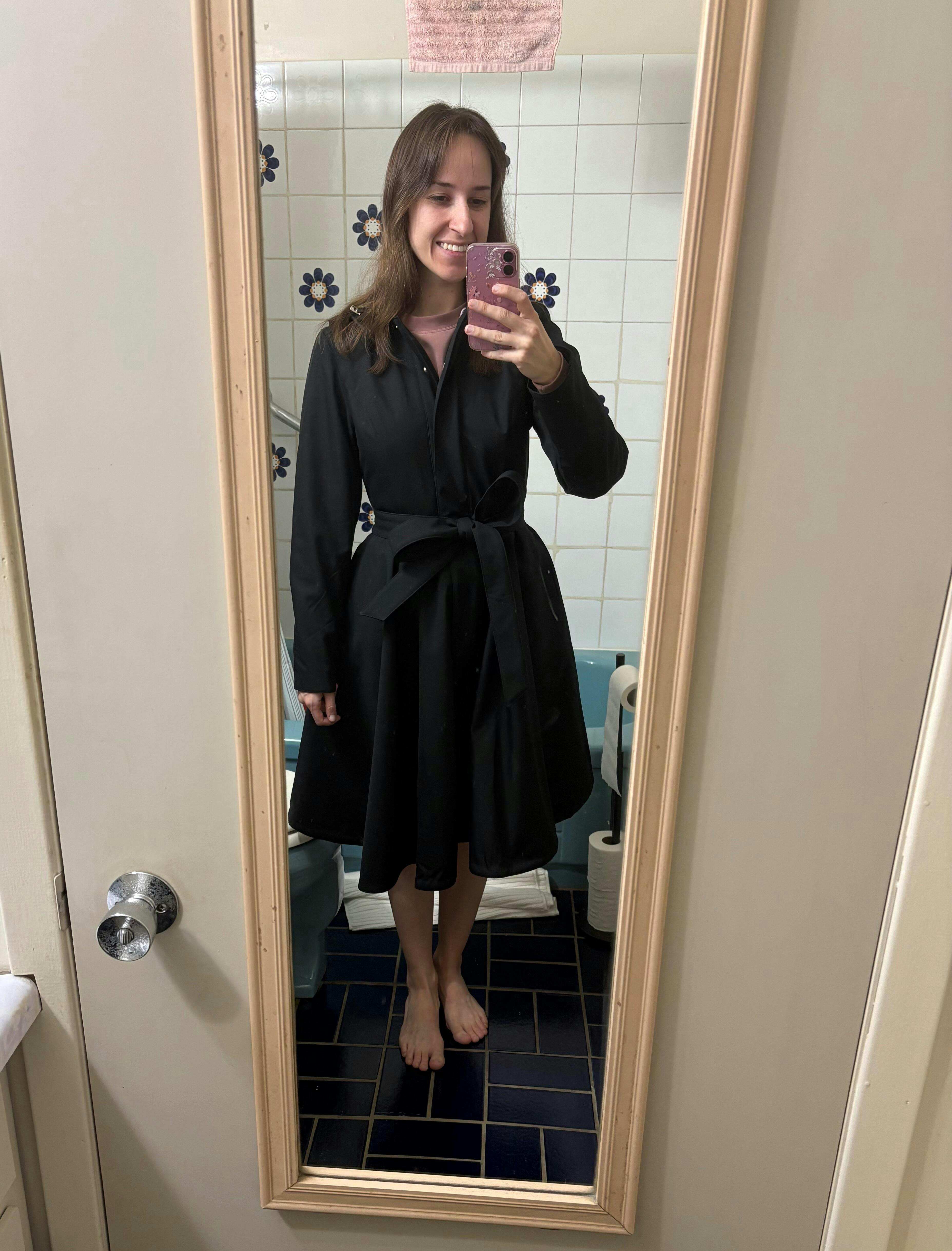 I’ve spent years searching for a coat like this… modern womens coats are always so unflattering and straight. Sometimes a girl just wants to twirl in the rain!! The price was too much for me but I waited for a sale (it was still a huge splurge) and I am so happy! It’s not often I am this excited getting something in the mail - I’ve been wearing it around the house all evening and laying it out on the sofa in front of me just so I can stare at it. Yay!!!