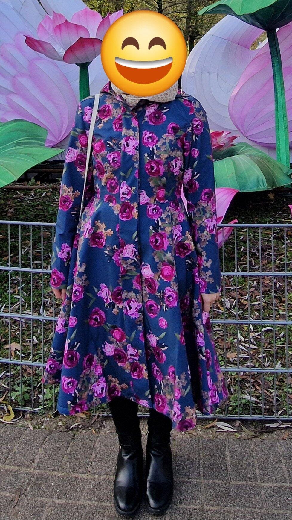 This raincoat is absolutely beautiful, combining practicality with elegance. I often receive compliments when wearing it, and I genuinely feel that its joyful colors bring a smile to people on the street among all the dark coats.
