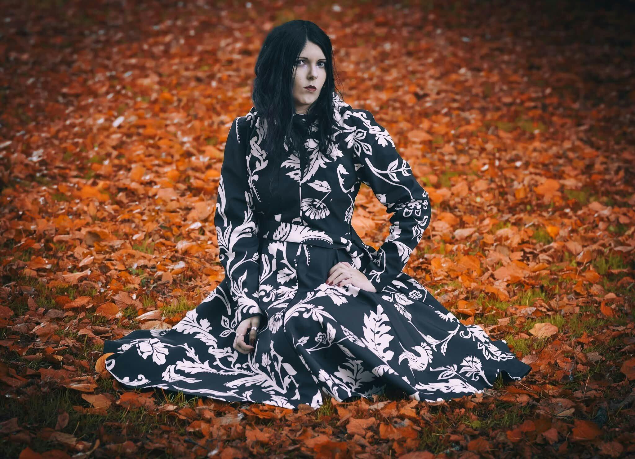 The 'Blooming Night' fitted women's coat is a beautiful mix of black and pretty flowers in white. It fits snugly at the top and flares out at the bottom for a stylish and comfortable feel. Put on this coat, and feel the charm of black meeting floral magic, creating a look that's not just about wearing, but about embracing your unique style with every step.
