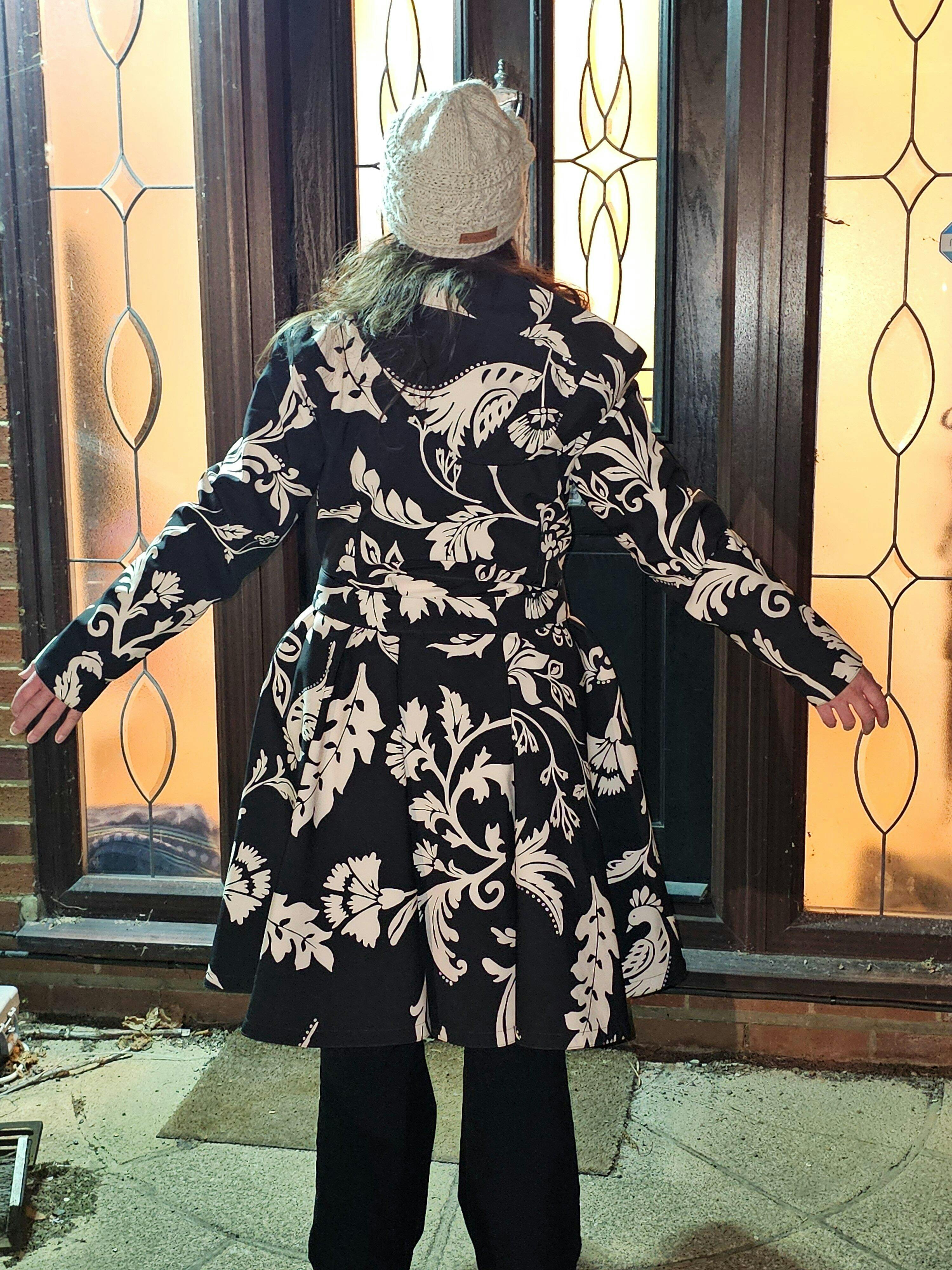 I love this coat. It is classic and unique all at the same time. I get compliments every single time I wear it. The fabric holds its shape so it drapes beautifully. The pattern makes you feel like you're in a classic movie. And it really does protect you from the rain and wind and stay warm. Definitely get the matching belt as it really completes the look. I can't recommend this coat enough!