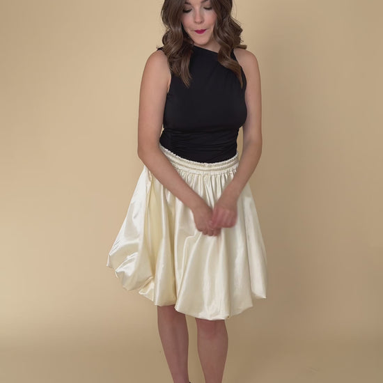 Flatter your figure, lift your mood, and upgrade your outfit with the Off-White Balloon Mini Skirt. Designed to make you feel unstoppable. It’s made from a luxurious blend of cotton and viscose with a gentle stretch, while the delicate off-white hue and balloon shape create a playfully feminine look.